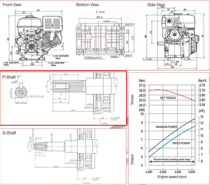 До вашої уваги представляємо 4-тактний бензиновий двигун загального призначення Loncin G390F(I), потужність 11.2 к.с. із ручним стартером. Діаметр валу – 25.4 мм, довжина валу – 88 мм.