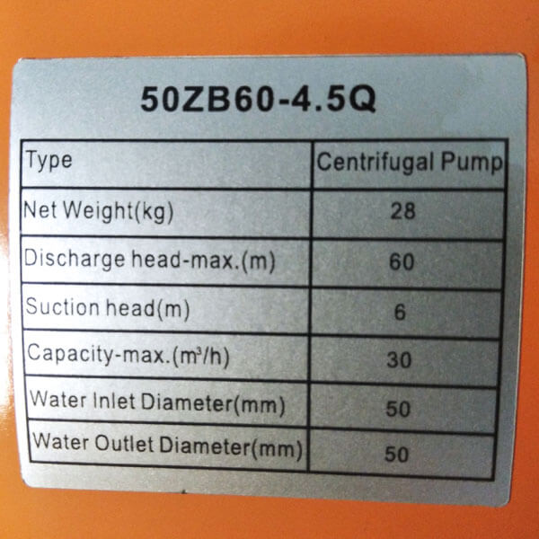 Технічні характеристики – Мотопомпа Loncin LC50 ZB60-4.5Q (500 л/хв, 30 куб/год, 50 мм) високонапірна