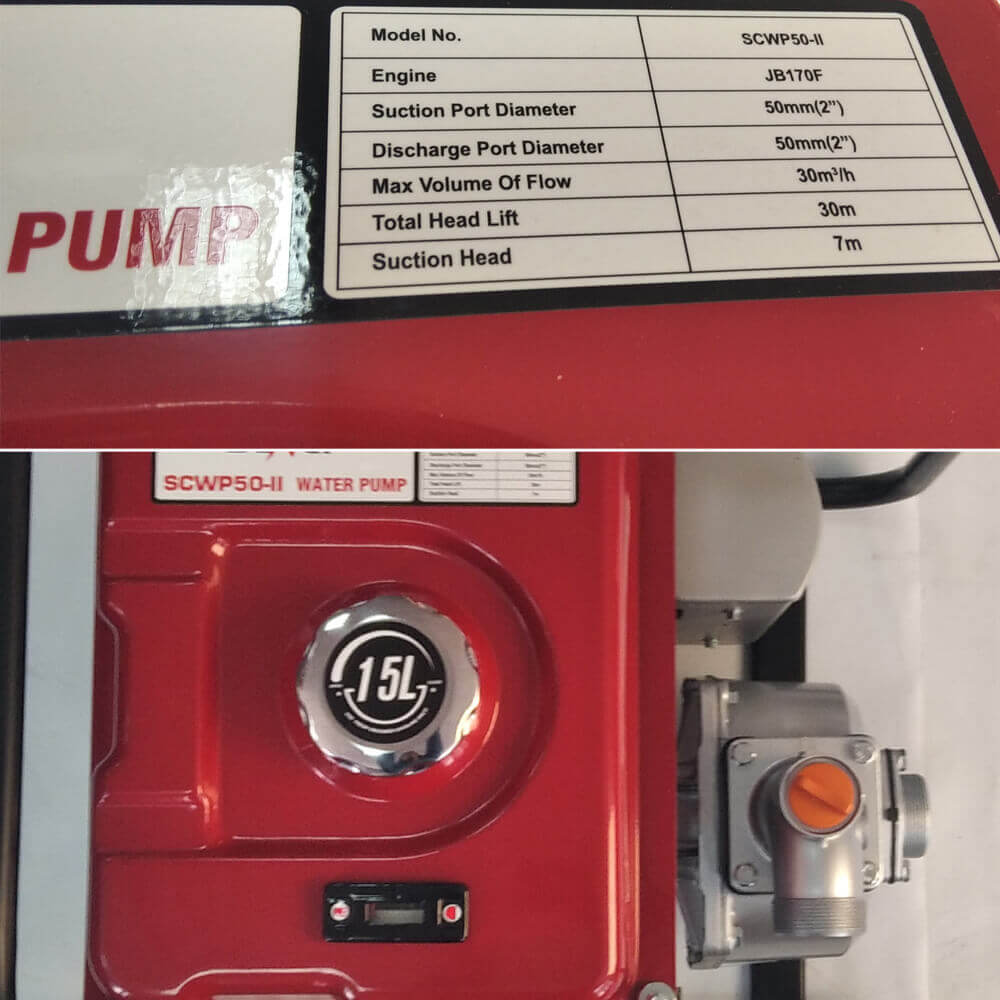 Мотопомпа для напівбрудної води від компанії Senci, модель SCWP50-II. Збільшений бак на 15 літрів. Максимальна продуктивність цього бензинового насоса 500 літрів на хвилину або 30 куб.м на годину. Діаметр патрубків які встановлюються на цю мотопомпу – 50 мм. Використовується для поливу та інших робіт (частинки до 6 мм). Більш детальні характеристики дивіться нижче.